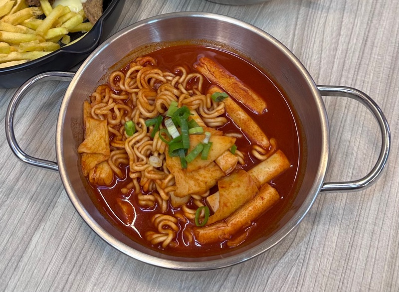 - Kombinasi tekstur unik → kue beras (tteok) yang kenyal berpadu dengan mie instan yang lembut.